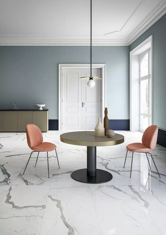 歐洲的室內設計更多地在探尋家具如何為已經精心設計的室內空間錦上添花。當室內空間已經足夠現代的時候,設計師們會尋找更加獨特的設計語言來表達,賦予空間獨一無二的標記。一個簡單又有力的方式就是在房間里的墻上下部分涂上不同顏色的涂料。