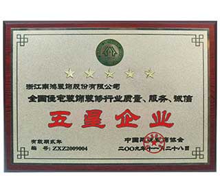 全國住宅裝修行業質量、服務、誠信五星企業