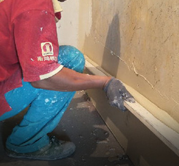 隱蔽工程驗收合格后,泥工進場補線槽局部修補,衛生間墻面防潮處理